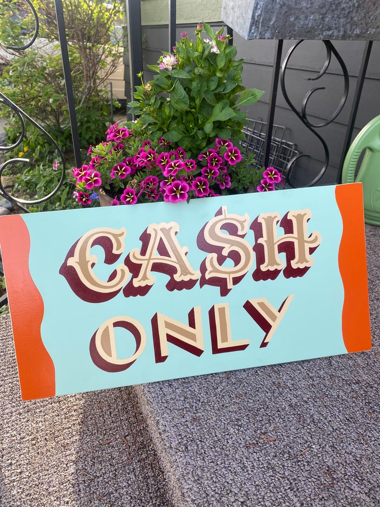 Cash Only sign. Hand crafted from the finest local grass-fed, free range, non GMO MDF you can find. Painted with enamels using brushes.